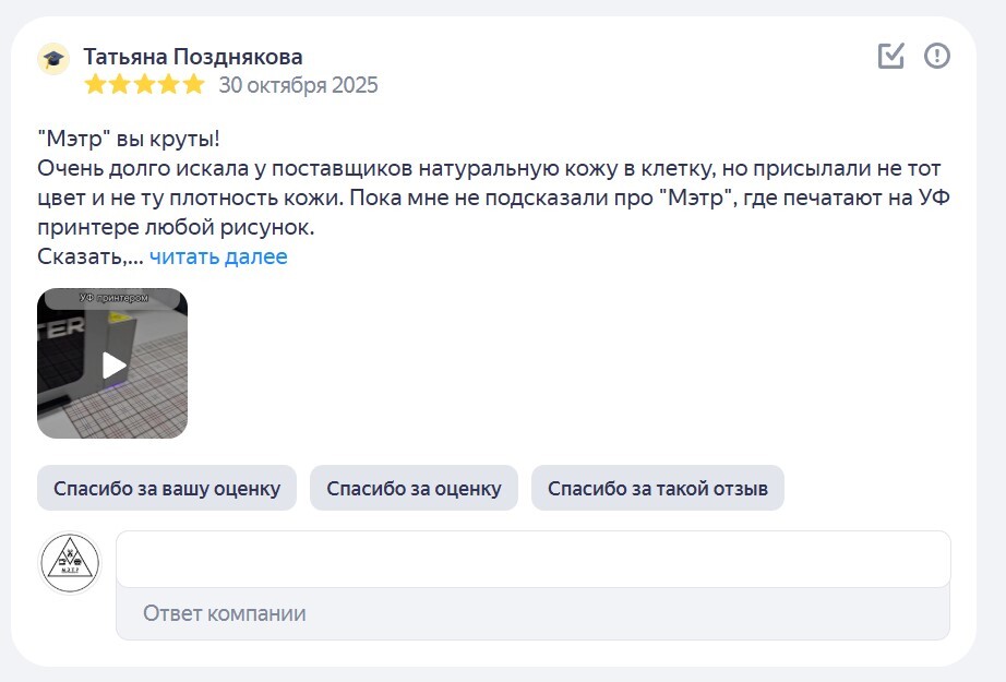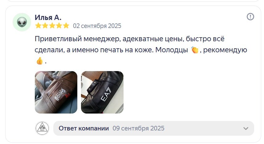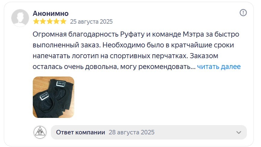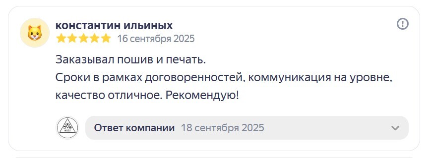 Наши мощности включают лазерную резку, УФ- и DTF-печать, пошивочные цеха и индивидуальную разработку изделий. Работаем с частными предпринимателями, ресторанами, службами доставки и крупными компаниями по всей России.